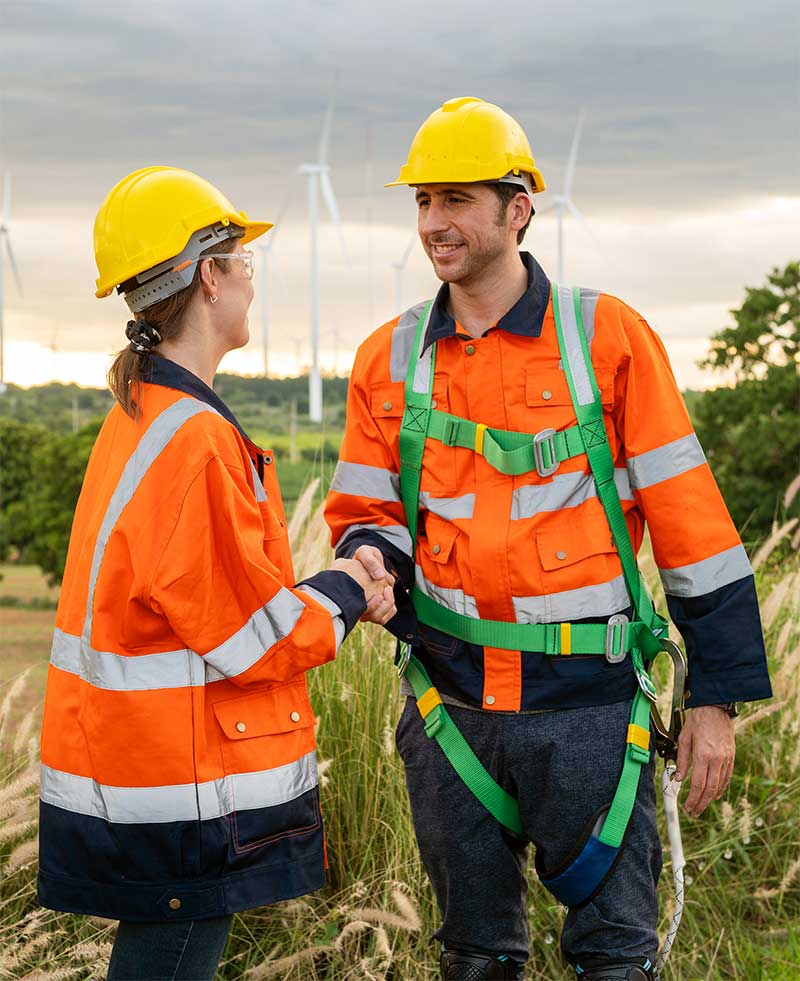 Sustainability is built into every step we take – from responsible production and efficient resource use to durable designs and eco-friendly materials – ensuring our workwear protects people while preserving the planet for future generations.
